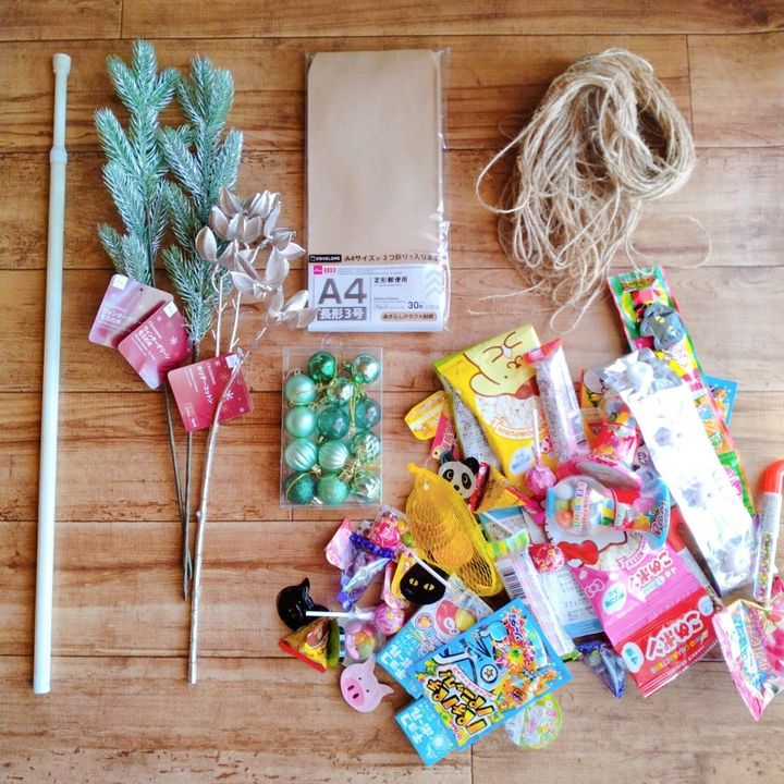 ポイントは、豪華なお菓子(と、いっても60円くらいですが)をランダムに入れること。どんなお菓子が入っているかは開けるまでのお楽しみなので、子ども達が居ないスキにササっと袋詰め。「これを開けたらどんな顏をするだろう?」と、作る間中ニヤニヤする時間もまた楽しい!