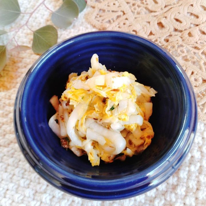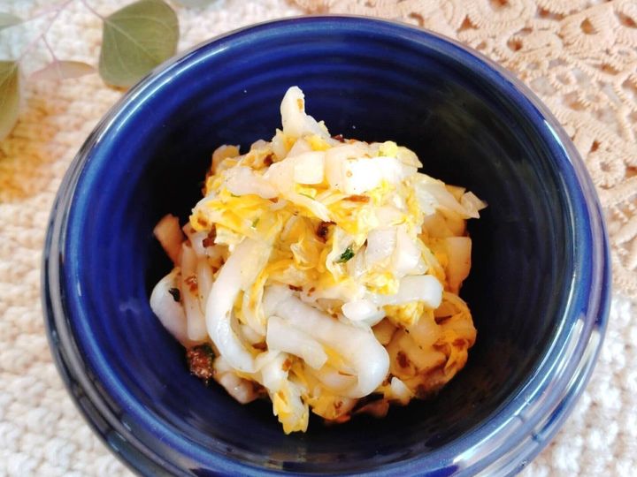 白菜の水分をフリーズドライスープが吸ってもどるので、水は不要です。防災メシだけでなく、ふだんの副菜やお弁当のおかずとしても使えるレシピ。フリーズドライに和える野菜は、水分量の多い白菜やきゅうりトマトがおすすめですよ。