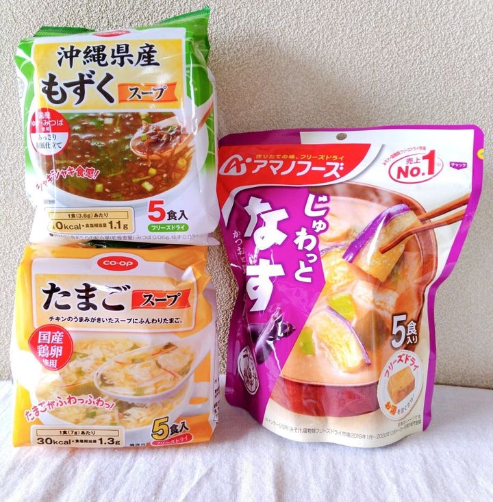 わが家のお気に入りは、もずくスープ。大好きなもずくが手軽に食べられるうえ1食分が10キロカロリー。ゆずがふわっと香るのもお気に入りです。
