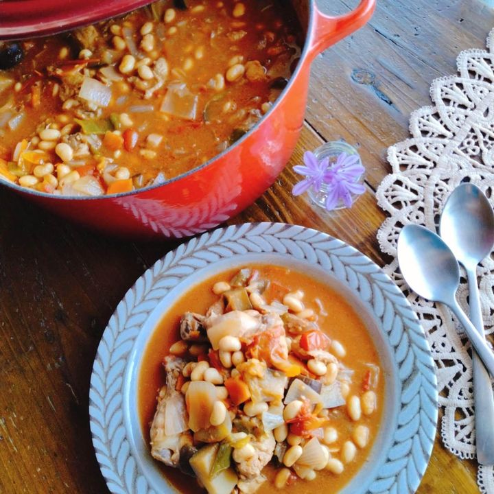 給食で大好きだったポークビーンズを、豚肉より安く買える鶏むね肉や手羽元でつくった子ども達の大好物のメニュー。