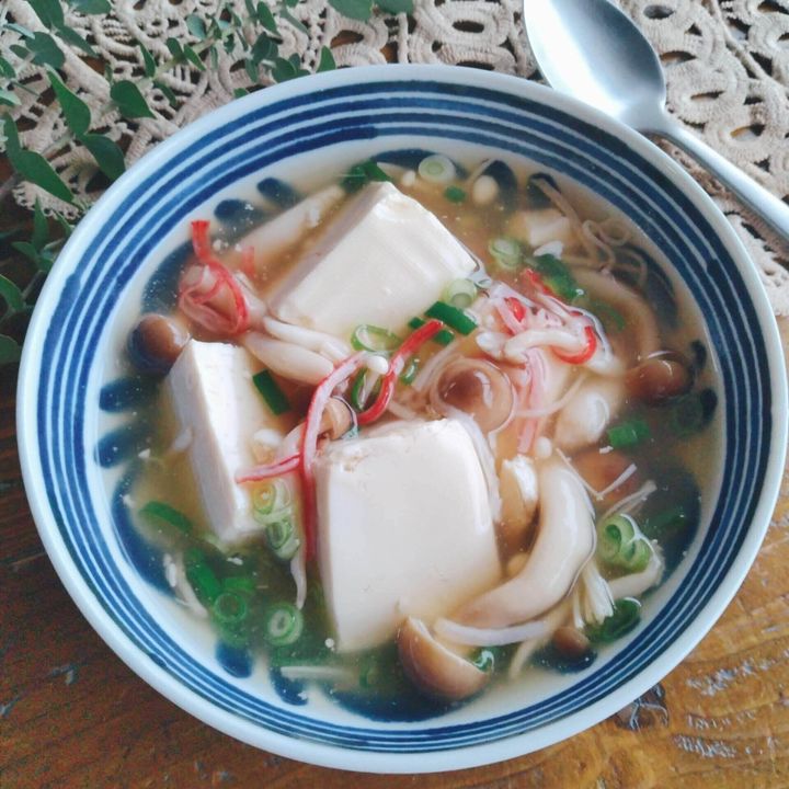 48円(税込)の豆腐1丁で家族4人たっぷり食べられる激安レシピ。冷めにくいあんかけなので、肌寒い今の時期にぴったり。カニカマから出るダシもホッとする味わいです。