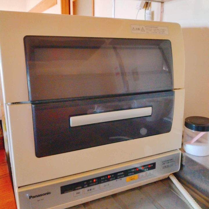 9年前に約5万円で購入したパナソニックの食器洗い乾燥機。当時通っていた電気屋さんから「1日分の食器を、電気代、水道代、専用洗剤含めて1回30円で洗ってくれます。手洗いするより使う水も少ないですよ」と、言われ即購入。