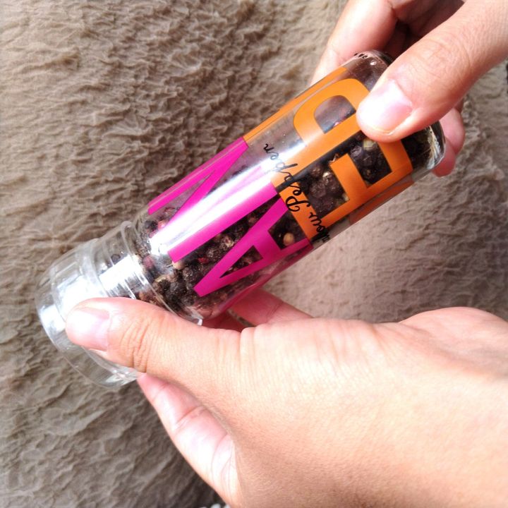 わたしが使っているのは、カルディのスパイスアップレインボーペッパー(ミル付き)355円(税込)。フタを開け、ガリガリとミルを引く5秒で、貧相な料理が高見えする最高の神アイテム。