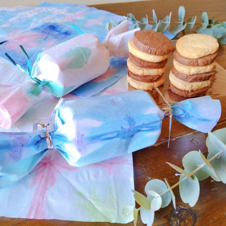 手づくりのクッキーもラップに包んだあとに「おり染め」でプレゼント風に。