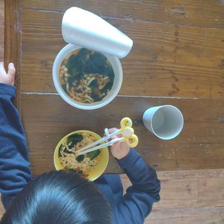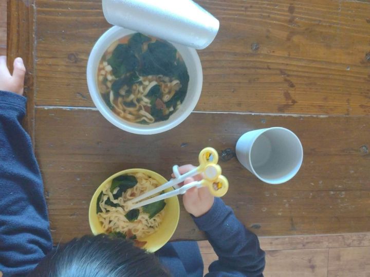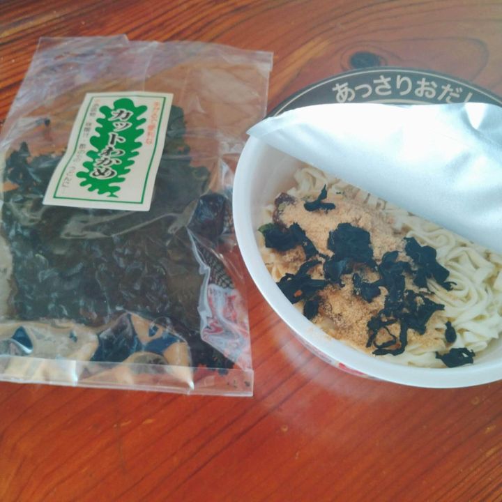 深夜の当直後に小腹を満たすために、巡視船の夜食として常備していたカップ麺に「乾燥わかめ」を足して食べていたので、家でも同じように具の少ないカップ麺を食べる時は、乾燥わかめを足して食べています。