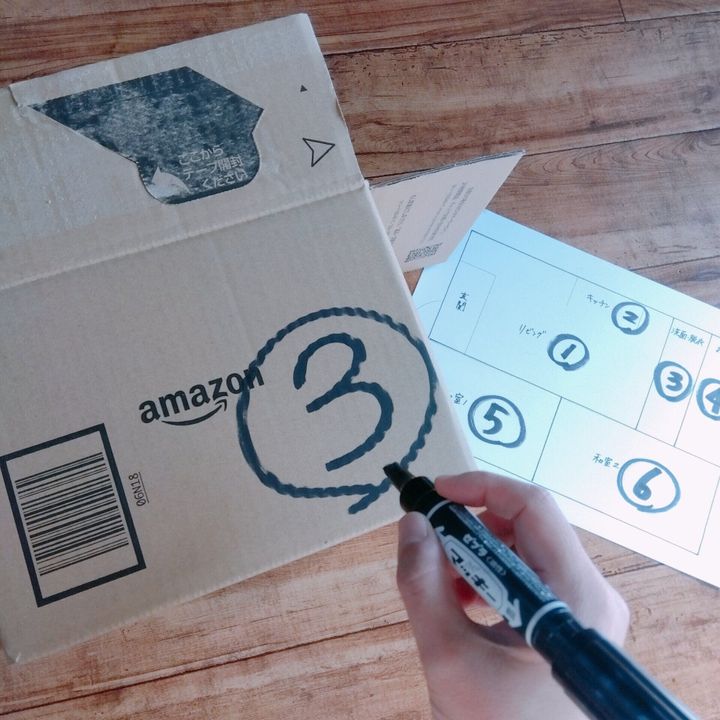 そして、リビングのモノが入っている段ボールには「1」、キッチンのモノが入っている段ボールには「2」と番号を入れていくだけで、どこの部屋のモノかひと目で分かるので引っ越し後の荷ほどきが、とてもラクになりました。