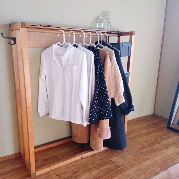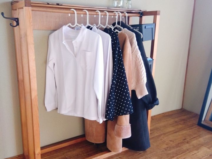 ただし、ハンガーラックは服をかけすぎていないことが条件。服をかける幅が90センチの場合、20枚前後の服の量ならセーフでした。