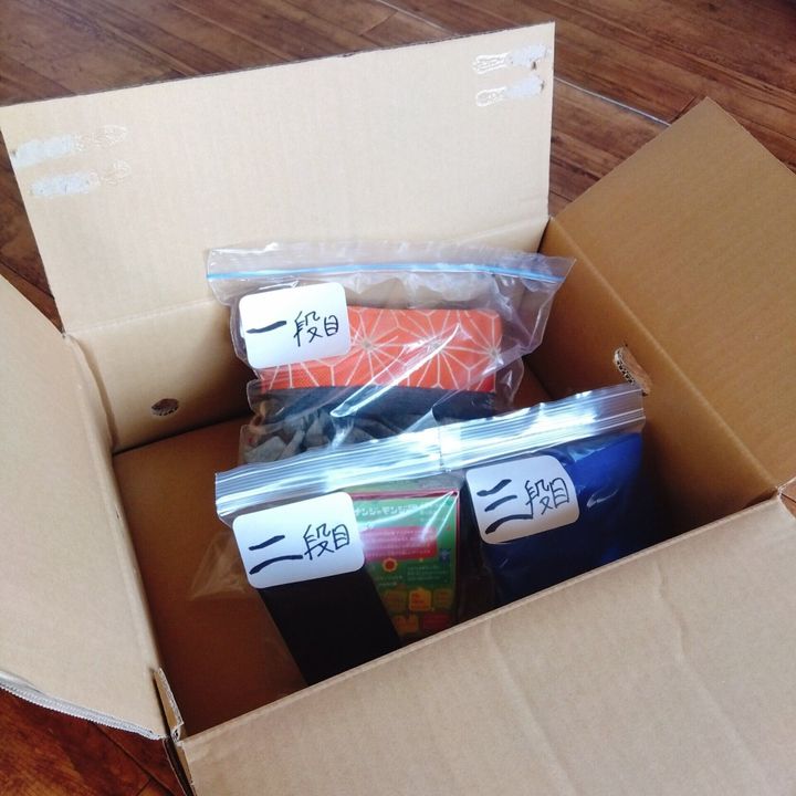 どうしても、色々なモノを1つの段ボールに入れたいときは、ジッパー付き保存袋や、ビニール袋に分けて入れています。こうすれば、段ボールの中でモノが混ざり合うことも避けられます。