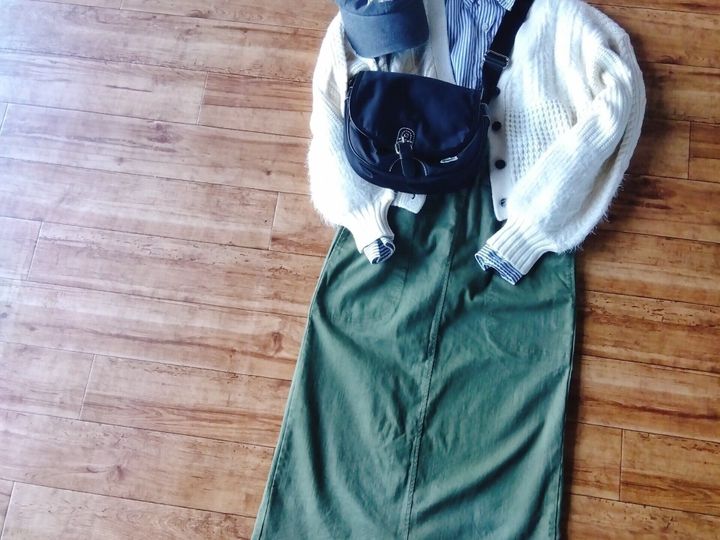 マネをさせて頂いたところは、「アラフォーにも肌馴染みが良いくすみカラー」と「お尻まで隠れるオーバーサイズ」の2点です。