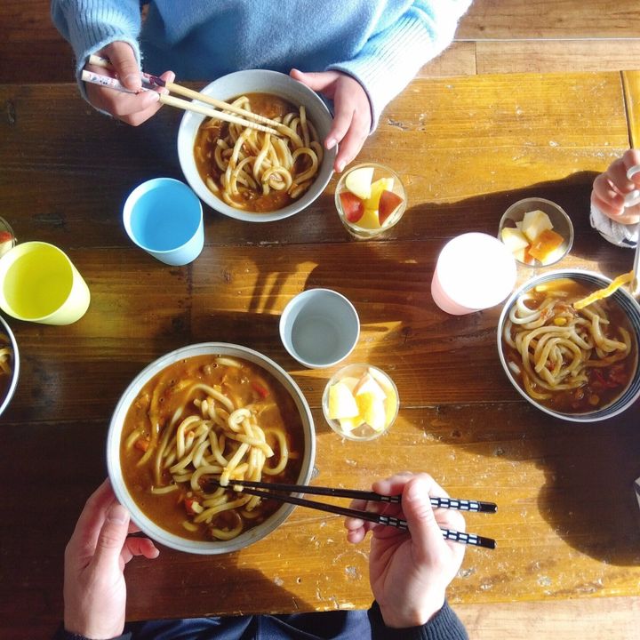 普段のおうちご飯の1食あたりの値段は、家族4人で600円ほど。しかし「うどん」なら、5玉買っても60円です。丸天やネギなどトッピングを入れても200円ほどなので、1食「うどん」に置き換えるだけで400円の節約に。
