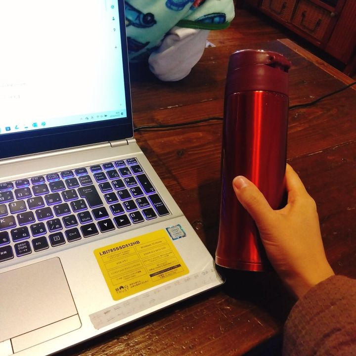 普段はパソコンに飲み物をこぼしてしまったら故障の原因になるため、側に置きませんが、しっかり蓋が閉まる水筒なら、安心してパソコンの横に置いておくこともできます。