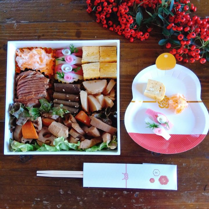 友人を自宅に招いて、新年会を催した際につくったランチボックス。