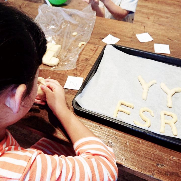 「Y」「F」「S」「R」がなかなか覚えられなかったので、粘土の様にクッキー生地をひも状にしてアルファベットの形をつくり、遊びの延長で勉強感なく無事にアルファベットを習得できました。この方法は30年間小学校の先生をしていた母から教わった方法です。