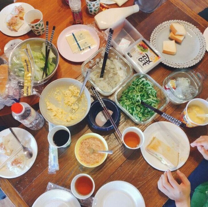 わが家の朝食は、夫が「お粥」、わたしが昨夜の「残り物の親子丼」、長女が「パン」、息子が「お餅」など、みんなバラバラ。