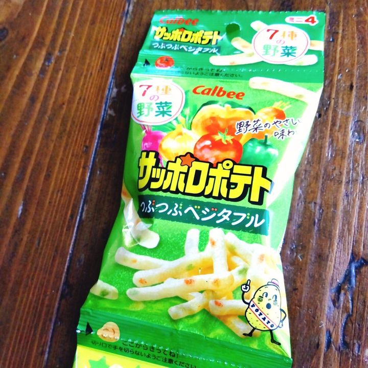 お菓子なのに、なぜか食べるときに罪悪感が少ないサッポロポテト「つぶつぶベジタブル」。塩気が強すぎず、安心して子どもに食べさせることができるので、必ず購入しています。