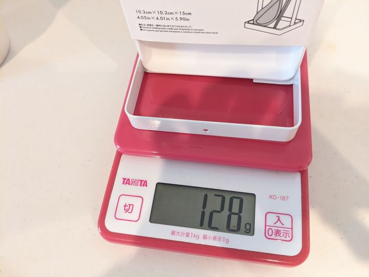 重量128gと、かなり軽いです。汚れやすいキッチンアイテム、お手入れのしやすさは重要ポイント。部品は取り外せて、洗いやすいのもありがたい。