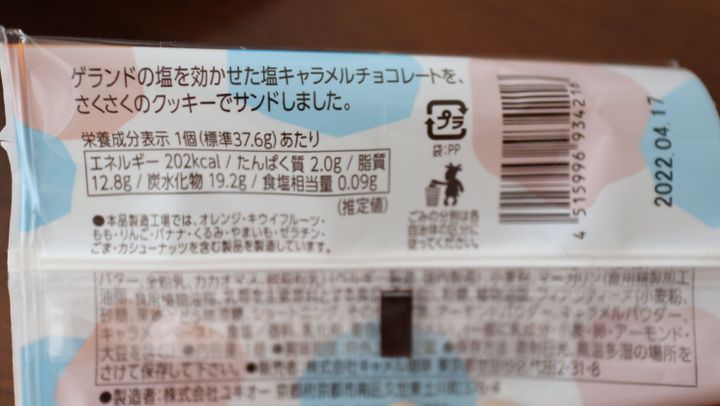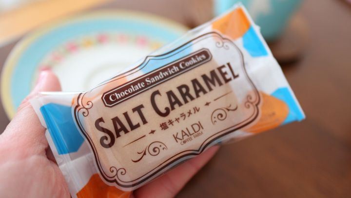 【カルディ】チョコレートサンドクッキー 塩キャラメル 1p 140円(税込)