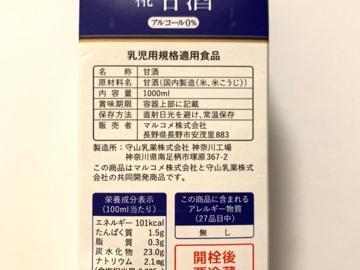 アルコール0%、原材料がシンプルなので安心。腹持ちも良いので、朝ごはんの前に飲むことで食べ過ぎの予防にもなります。