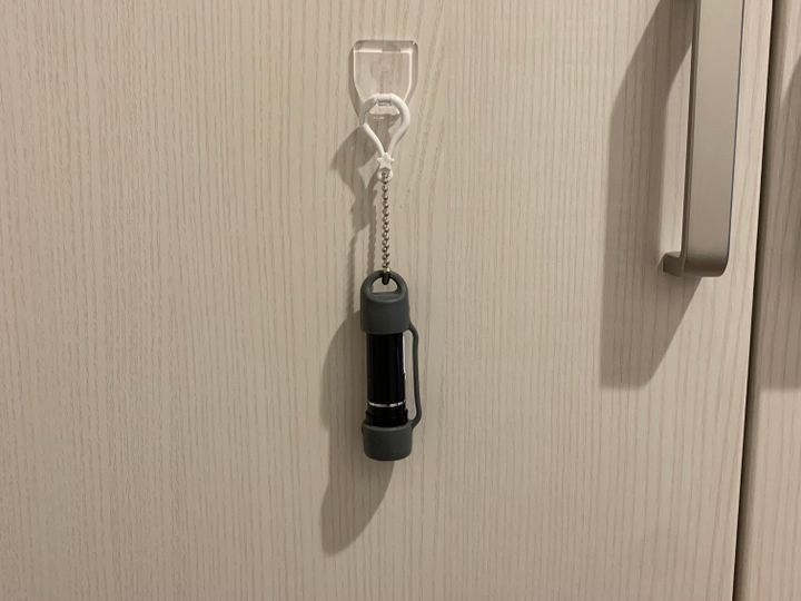 取り付けるとこの様になりました。チェーンは使わないキーホルダーのチェーンを再利用しています。
