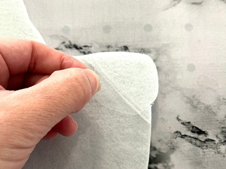 表面はフェルトのような肌触りで、材質はポリエステル、アクリル樹脂。