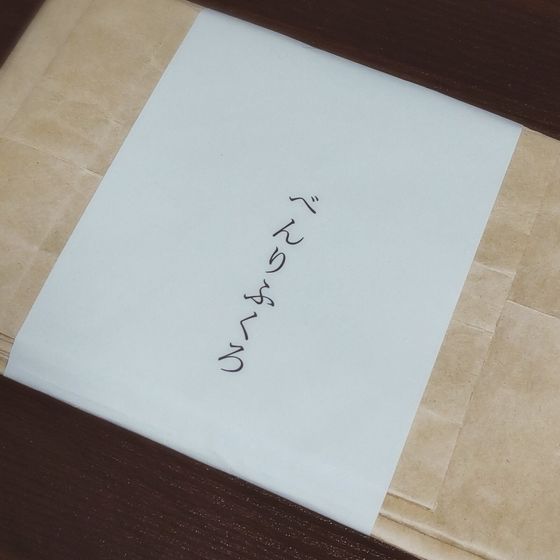 この袋は高校の印刷室で出た印刷用紙の包装紙を利用した物。