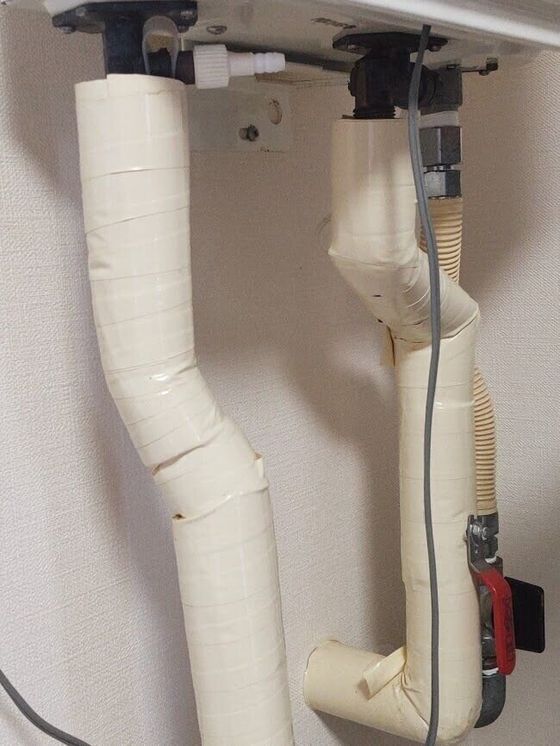 改めて、給湯器にも巻こうと思ったら、すでに以前の住人の方がつけてくれていました。
