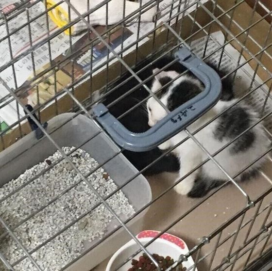 数十分後、あっけなく子猫は捕まり、かごの中にはもう1匹の可愛い黒猫が一緒に入っていました。