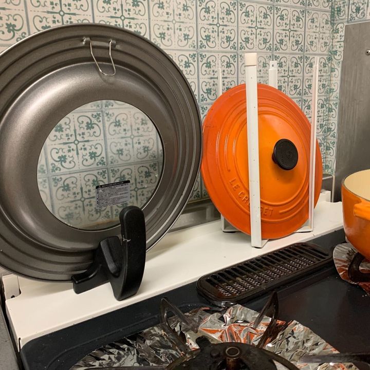コンロ周りには極力ものを置きたくないので、このスペースは鍋蓋の一時置きとして使うことにしました。