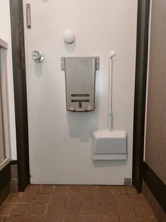 玄関は気になった時にいつでもサッと掃けるように、ほうきと塵取りを扉に掛けています。