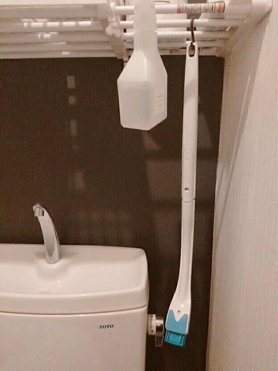 付け替え式の掃除ブラシの本体は吊るして収納。