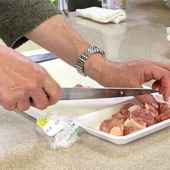 力を入れながら食材を切ることができるので、塊のお肉でも切りやすい。