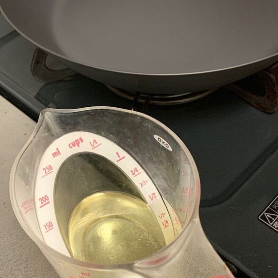 1.フライパンが温まったら多めの油を入れて全体になじませる。