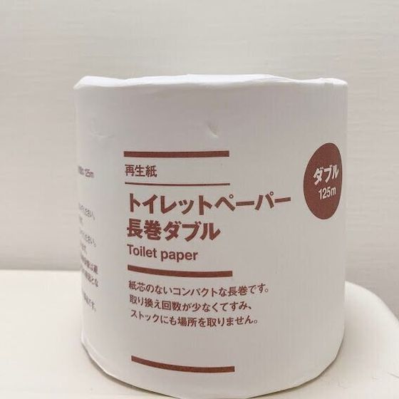 一般的な芯がある25m巻きダブルトイレットペーパーと比較すると、5倍の長さです。