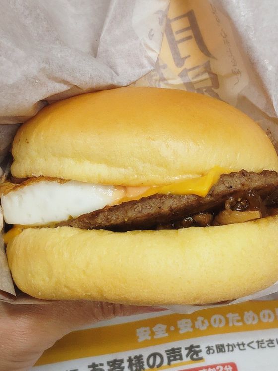 たまごと一緒にすき焼きの味わいが楽しめる和風バーガー。