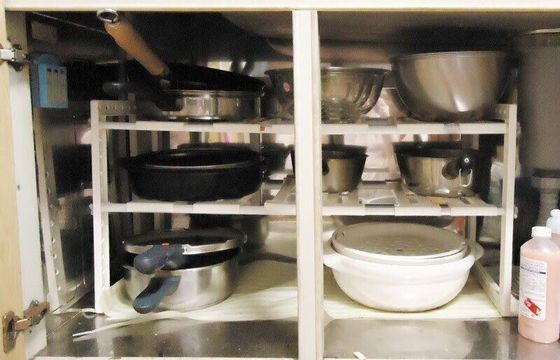 特にシンク下はそのまま使うと、下にばかり物が散乱し、上部はデッドスぺースになりがち。