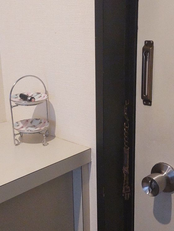 帰宅後にげた箱の上に放置することが多かったので、玄関の扉裏にちょい置きスペースを作りました。