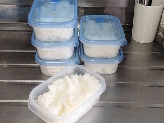 ごはんは1回で2日分炊くので、小さいサイズは特に多めです。