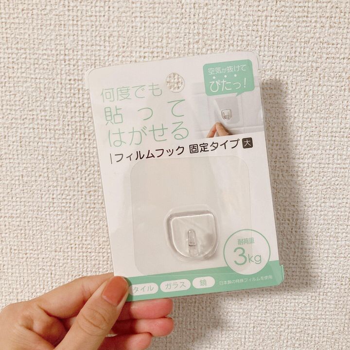 フィルム部分とフック部分がクリアになっているので、フックをあまり目立たせたくない場所や清潔感を出したいところにはとってもオススメです。