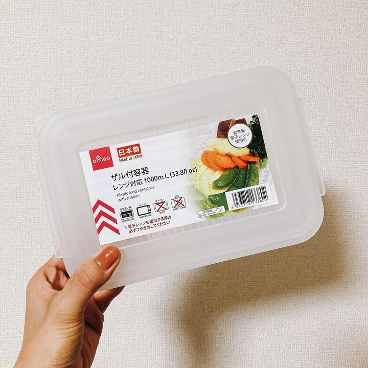 蓋がカチッと閉まらないのが難点ですが、水洗いしてザルのまま保管ができるので少し水分を残しておきたい食材や水を切りたい食材の保存にオススメです◎レンジにも対応しているので蒸し野菜も冷蔵庫から取り出してすぐに作れちゃいます。