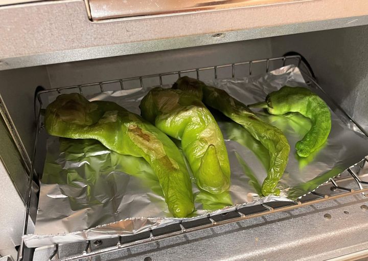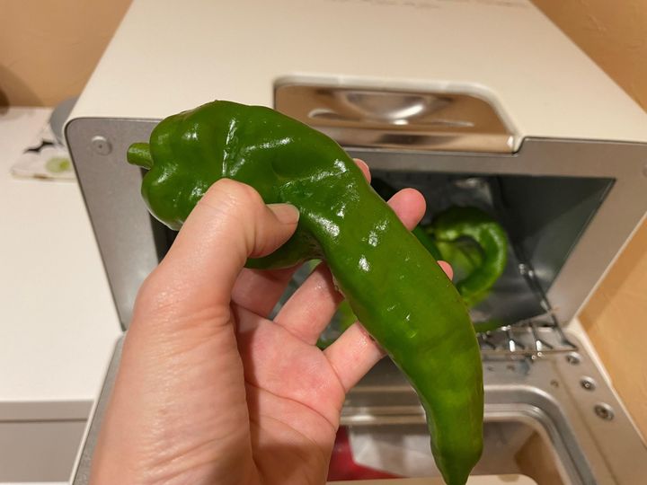 トースターで万願寺とうがらしに焼き色がつくまで焼きます。