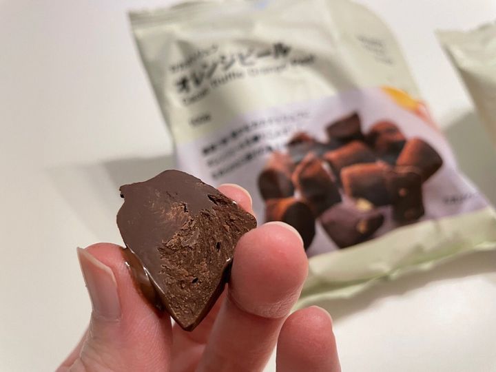 口に入れた瞬間オレンジの香りが抜けます。オレンジピールの食感はなく、口の中ですっと溶けます。