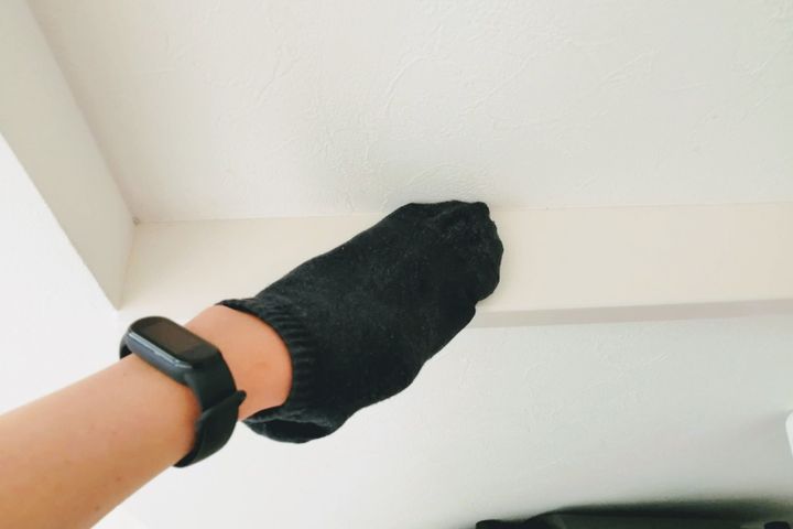 靴下を手に履かせるため、指でスーッと巾木や角をなぞることができ、細かい部分もきれいになります。
