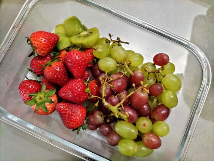 そして、切るだけ・洗うだけのお手軽なフルーツ類は、数種類プレートにのせるように意識しています。