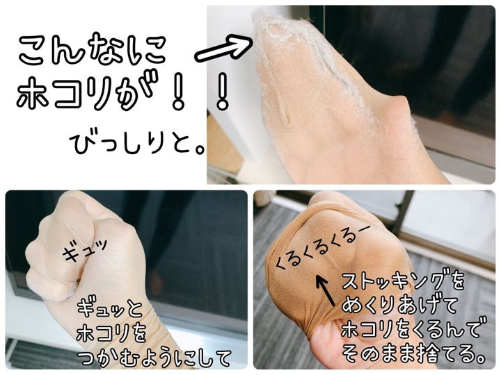 ストッキングはナイロンなどの化学繊維でできていますので、静電気を起こしてホコリを絡めとってくれます。
