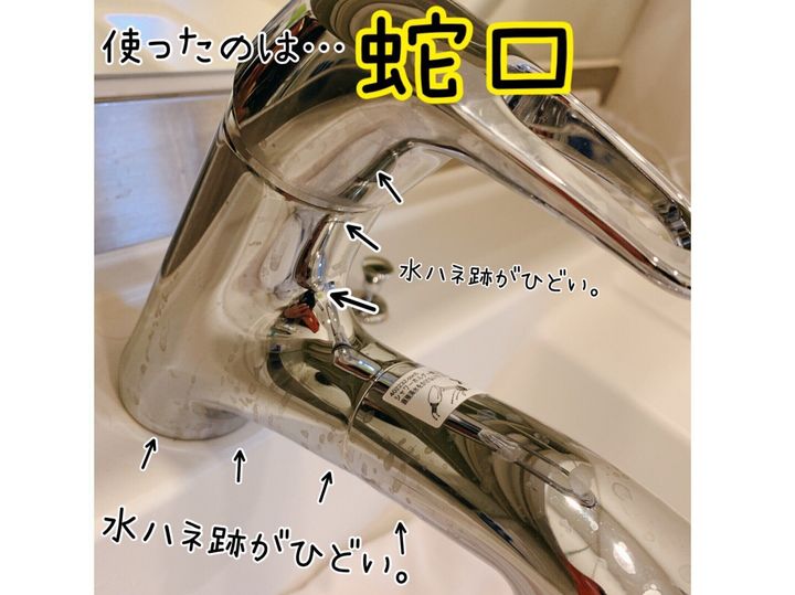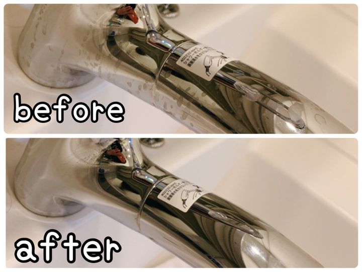 ガリガリした水アカなどはさすがにとることはできませんが、1週間分くらいの水ハネ跡くらいなら写真のようにピカピカに仕上がります。