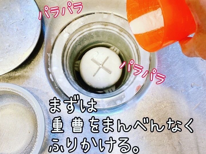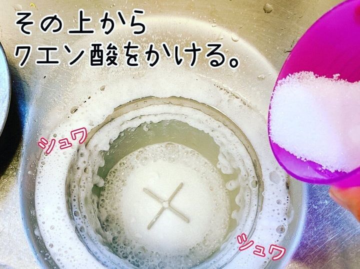 重曹をかけて、その上からクエン酸をかけます。