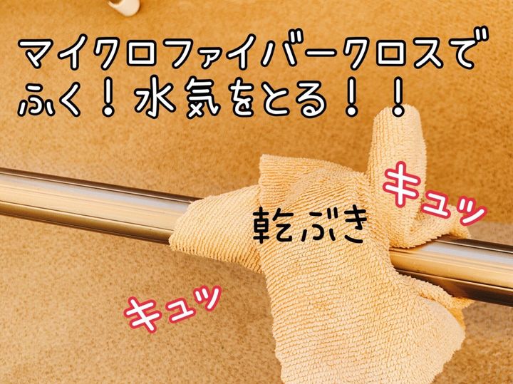 最後、仕上げにマイクロファイバークロスで物干し竿全体を乾拭きします。これで全工程がおしまいです。