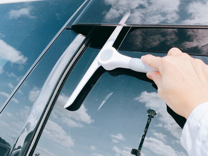 実は車に常備していると便利なスクイジー。ただいつも使う訳ではないので、100円均一のスクイジーで十分です。折り畳み式のスクイジーであれば場所もとらないので、車の収納に入れておいても邪魔になりません。