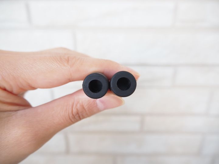 実際に菜箸を差し込んでみました。伸縮力のあるシリコーン製のため、難なく差し込むことができるのに、外れにくいように感じます。