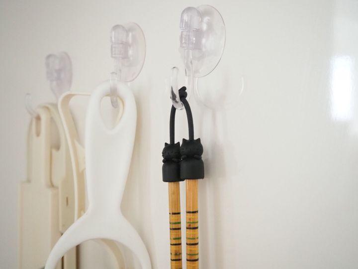 この商品を持ち手側の先端に差し込めば、菜箸がバラバラにならないで済むという優れもの。吊るして保管することもできるので、引き出しから取り出す手間も省けます。